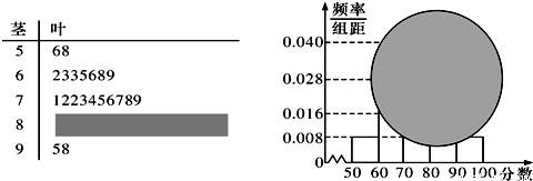 某校高三某班的一次数学测试成绩的茎叶图和频率分布直方图都受到不同程度的破坏,但可见部分如图,据此解答如下问题: