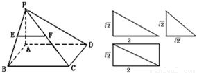 一个多面体的直观图和三视图如图所示,E,F分别为PB,PC中点.