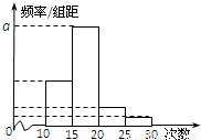 对某校高三年级学生参加社区服务次数进行统计,随机抽取M名学生作为样本,得到这M名学生参加社区服务的次数.根据此数据作出了频数与频率的统计表和频率分布直方图如下: