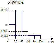 某学校随机抽取部分新生调查其上学所需时间(单位:分钟),并将所得数据绘制成频率分布直方图(如图),其中,上学所需时间的范围是[0,100],样本数据分组为[0,20),[20,40),[40,60),[60,80),[80,100].