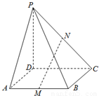 如图,四棱锥P-ABCD的底面是边长是1的正方形,侧棱PD⊥平面ABCD,M、N分别是AB、PC的中点.