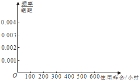| 寿命/小时 | 100~200 | 200~300 | 300~400 | 400~500 | 500~600 |