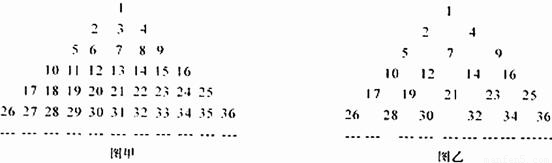 把正整数排列成如图甲三角形数阵,然后擦去第偶数行中的奇数和第奇数行中的偶数,得到如图乙的三角形数阵,再把图乙中的数按从小到大的顺序排成一列,得到一个数列{a
