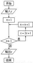 已知实数,x∈[0,10],执行如图所示的程序框图,则输出的x不小于47的概率为