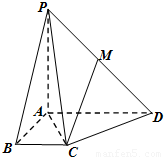如图,在四棱锥P-ABCD中,四边形ABCD为直角梯形,AD∥BC,∠BAD=90°,PA⊥底面ABCD,且PA=AD=2,AB=BC=1,M为PD的中点.