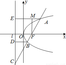2=2px(p>0)的焦点为F,准线为,经过F且斜率为k(k>0的直线与抛物线交于A、B两点(点A在x轴的上方),与准线交于C点,若|BC|=2|EF|,且|AF|=8,则P=