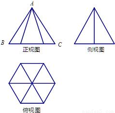 一个几何体的三视图如下图所示,其中正视图中△ABC是边长为2的正三角形,俯视图为正六边形,那么该几何体的侧视图的面积为( )