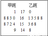 (1)乙班的样本数据的中位数是______、极差是______;