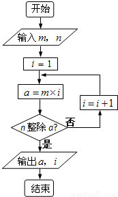 阅读程序框图,若输入m=4,n=3,则输出a=