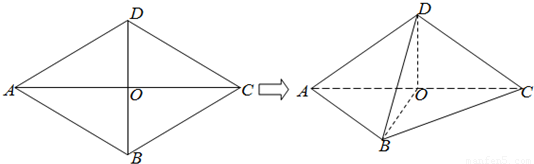 如图所示,已知菱形ABCD的边长为2,AC∩BD=O.∠DAB=60°,将菱形ABCD沿对角线AC折起,得到三棱锥D-ABC.