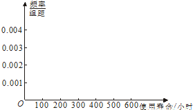 | 寿命/小时 | 100~200 | 200~300 | 300~400 | 400~500 | 500~600 |