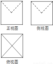 某几何体的三视图如图所示,图中的四边形都是边长为2的正方形,两条虚线互相垂直,则该几何体的体积是( )
