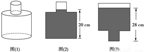 如图(1)所示,一只装了水的密封瓶子,其内部可以看成是由半径为1cm和半径为3cm的两个圆柱组成的简单几何体.当这个几何体如图(2)水平放置时,液面高度为20cm,当这个几何体如图(3)水平放置时,液面高度为28cm,则这个简单几何体的总高度为( )