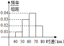 200辆汽车通过某一段公路时,时速的频率分布直方图如图所示,则时速在[50,70)的汽车大约有( )