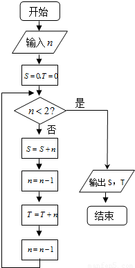 阅读右边的程序框图,若输入的n是100,则输出的变量S和T的值依次是( )