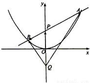 2=4y的对称轴上任一点P(0,m)(m>0)作直线与抛物线交于A,B两点,点Q是点P关于原点的对称点.