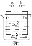 D、a和b分别连接直流电源正、负极,电压足够大时,Cu2+向铜电极移动