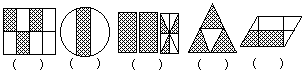 12. 下面各图中的阴影部分, 能用分数表示的就在括号里写出这个分数, 不能用分数表示的打×.