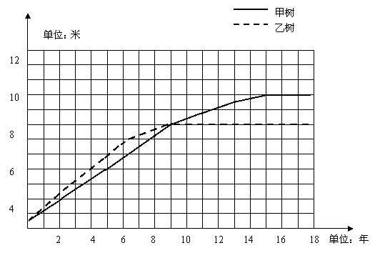 ①从开始植树到第6年,两种树中生长速度较快的是( )树(填“甲”或“乙”);
