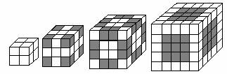 5.把大立方体表面全部涂上颜色,然后锯成许多个小木块,(设小木块每条棱长为1)。