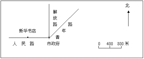 (1)新华书店距市政府( )米。(图上距离取整厘米数)