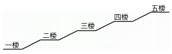 4、小明家住五楼(如下图),他数了数相邻两个楼层之间的楼梯共有10个台阶。他从一楼到5楼一共要上( )。