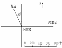 (2)商店在小丽家( )偏( )( )度方向( )米处。
