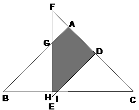 如右图,两个等腰直角三角形叠放在一起,AF长3,AC长12,DE长8,重叠部份(阴影部份)五边形AGHID的面积是 。