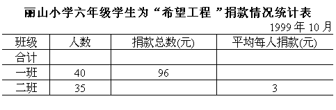 6.丽山小学六年级学生为“希望工程”捐款情况,有部分数据已记载到统计表上,请你把统计表填写完整。(不要求列式)