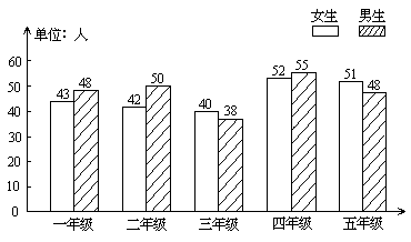 五爱小学各年级男、女生人数统计图