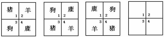 15.四个小动物换位,开始小猪、小羊、小狗、小鹿分别坐在第1、2、3、4号位置上(如下图 ).第一次它们上、下两排换位,第二次左、右换位,第三次又上、下交换,第四次左、右 交换.这样交替进行下去,问十次换座位后,小狗坐在第几号座位上?
