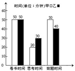 (2)从条形统计图上看出( )的思考时间多一些,多( )分钟。