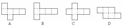下图中有4种形状不同的硬纸,把它们照虚线折叠,( )不能折成立方体。