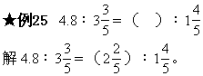 把第一个空与第三个空先联系起来想,即65∶( )的比值必须是五又几分之几,那么65除以多少是5倍多呢,只有填(12)才可能成立,这时后两个括号就迎刃而解了。