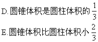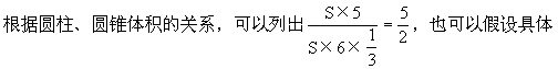★★★例62一个圆柱体和一个圆锥体底面积相等,它们高的比是5∶6,体积的比是( )。