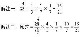 分数、小数乘除混合运算一般用分数计算比较简便。可以把小数看作分母是1的分数,直接参加约分或相乘(如解法一);也可以把小数化成分数后再计算,比较简便,同时能减少计算的错误(如解法二)。