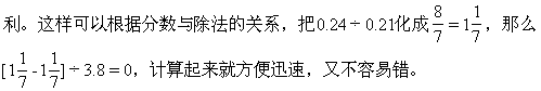 计算此题时,对中括号里的“0.24÷0.21”,应如何处理呢?应从整体