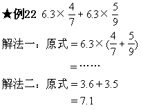此种解法是乘法分配律的逆运用。即几个数同乘以一个数的和,可用这几个数的和乘以这个数。