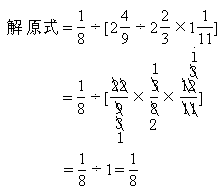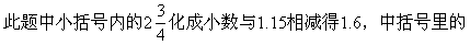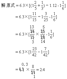 此题计算步骤较多,容易出错,计算时要一步步认真去做,中括号内的两个小数,必须化成分数才能计算,而6.3则不要化成分数,与中括号内的计算结果可直接约分。