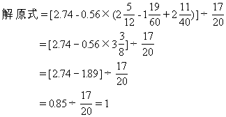 前面小括号内“14.85-7.63=7.22”后,再计算后面的小括号,才发现等于“0”,这样则浪费不少时间。