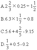 ★★2.下列各式中,把分数化成小数和把小数化成分数计算比较简便的算式分别是( )。