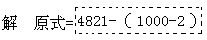 此题中的减数998接近1000,我们就把它变成1000-2,根据减法去括号性质,原式=4821-1000+2,这样就可口算出来了,计算熟练后,998变成1000-2这一步可省略。