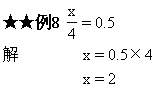 根据分数与除法的关系,可知x是被除数,被除数=商×除数,因此x=0.5×4,x=2,然后把x=2代入原式验算。