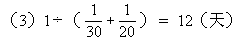 ★例1 一项工程,由甲队做30天完成,由乙队做20天完成。(1)两队合做5天可以完成工程的几分之几?(2)两队合做10天,还剩下工程的几分之几?(3)两队合做几天完成?