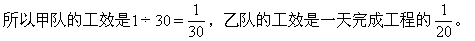 要解答3个问题,都离不开工作效率。甲队30天完成,总工程是“1 ”,