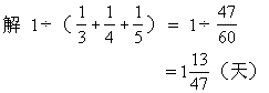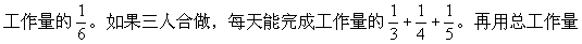 “1”除以三人每天完成的工作量(即工效之和),就得到三人合做需要的时间。
