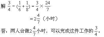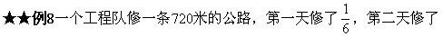 ★★例4 一件工作,甲单独做,需要6天,乙单独做,需要8天,两人 ![]()