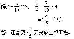 ★★例6 有一项工程,甲队单独做需要10天,甲、乙两队合做需要4天。如果甲队先做3天,然后两队合做还需要几天?