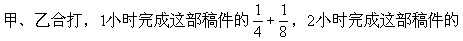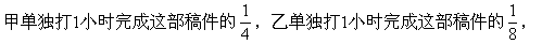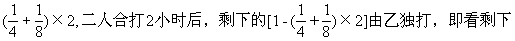 ★★★例7 打字员打一部稿件,甲单独打4小时可打完,乙单独打8小时可打完,二人合打2小时后,剩下的由乙独打,还需要几小时打完?