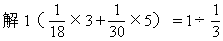 ★★★例8一批货物,用一辆卡车运18次运完,用一辆大车运30次运完。现在用同样的3辆卡车和5辆大车一起运,几次可以运完?